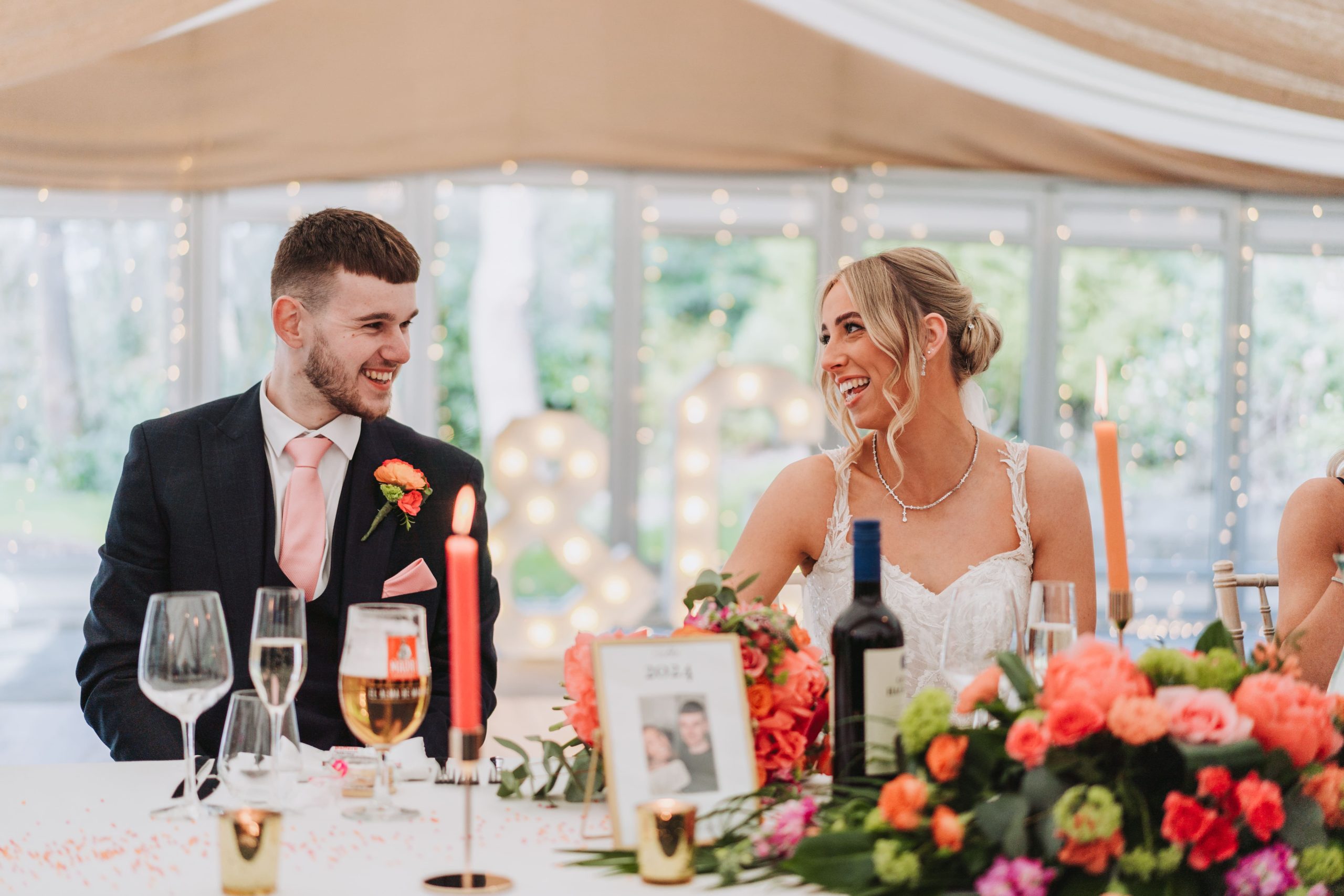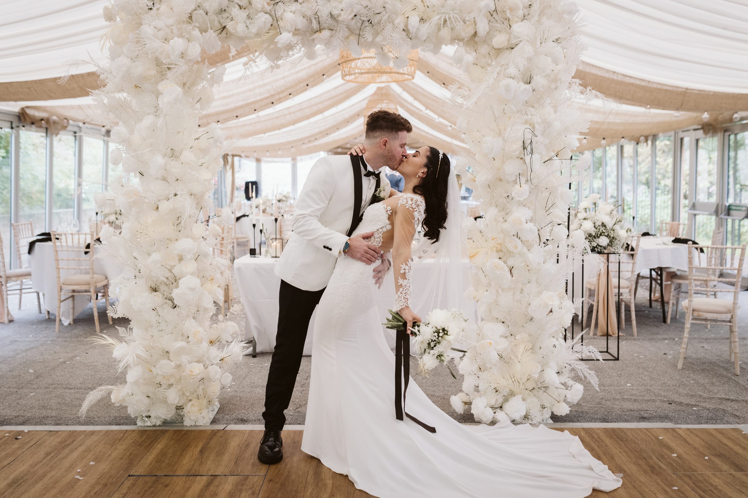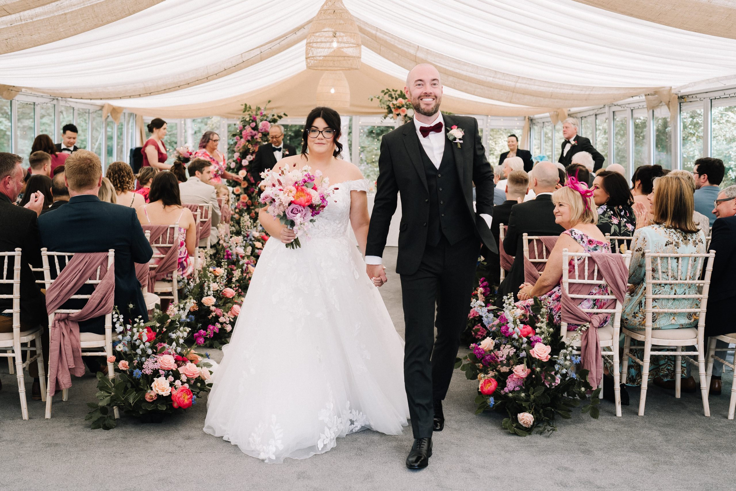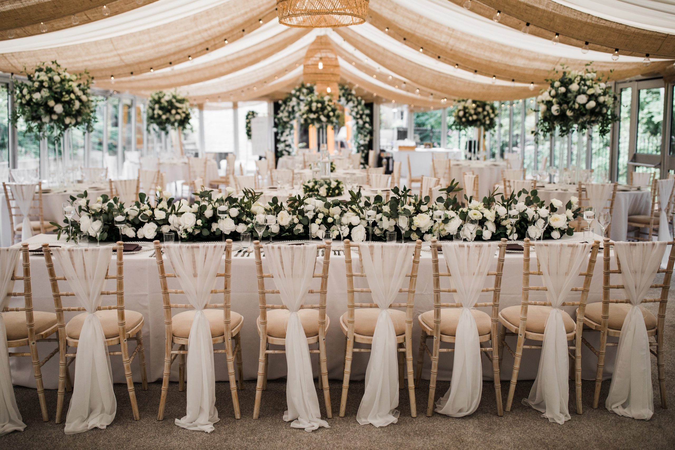 Entering through our aged English Oak-Framed Orangery out on to the Indian stone patio, before heading through into our beautiful glass fronted marquee, allowing all the splendour of the countryside to be part of your special day.