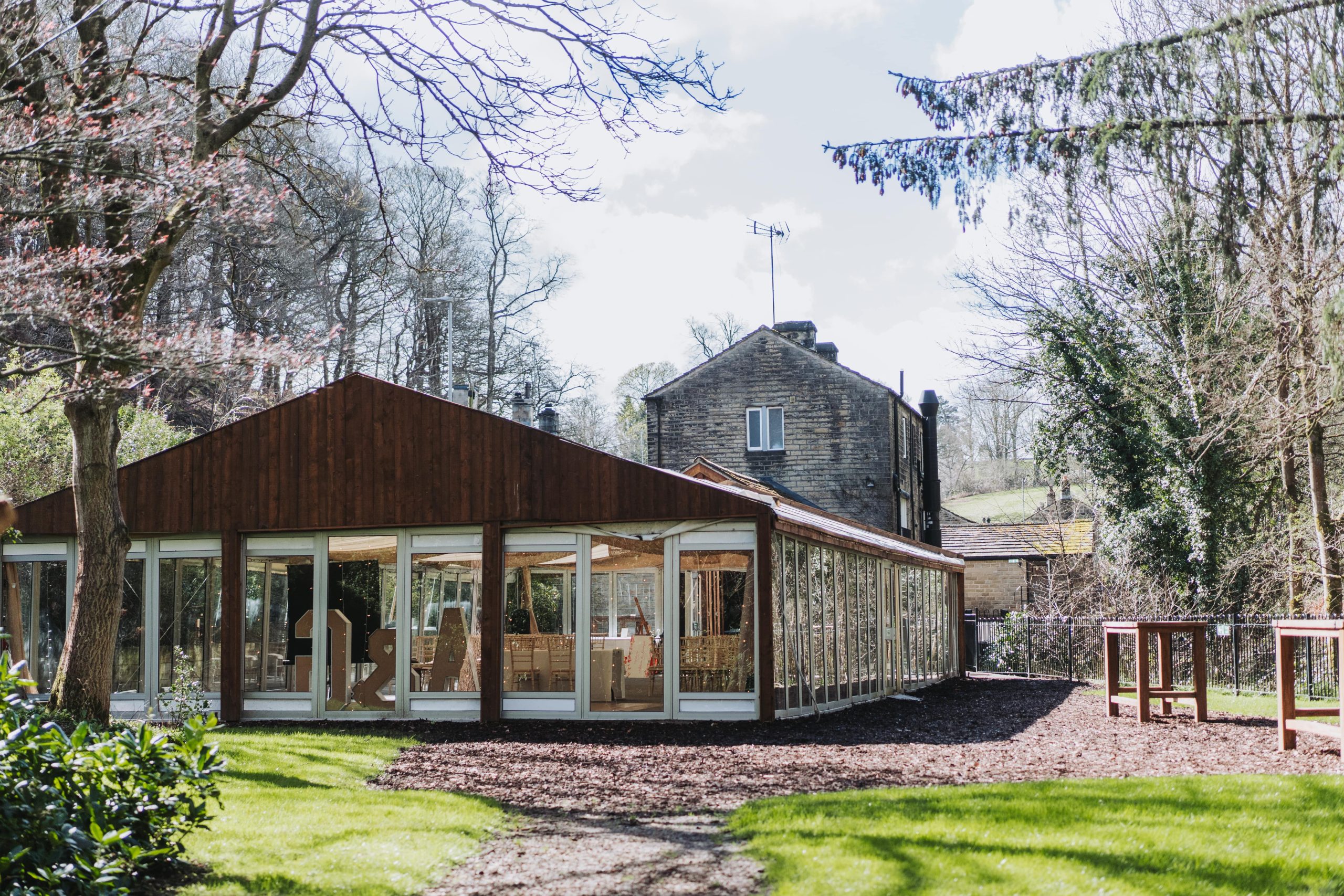 Set amongst the mature woodlands of Thunderbridge alongside the tranquil sounds of Beldon Brook, Thunderbridge Gardens is a country wedding venue like no other.